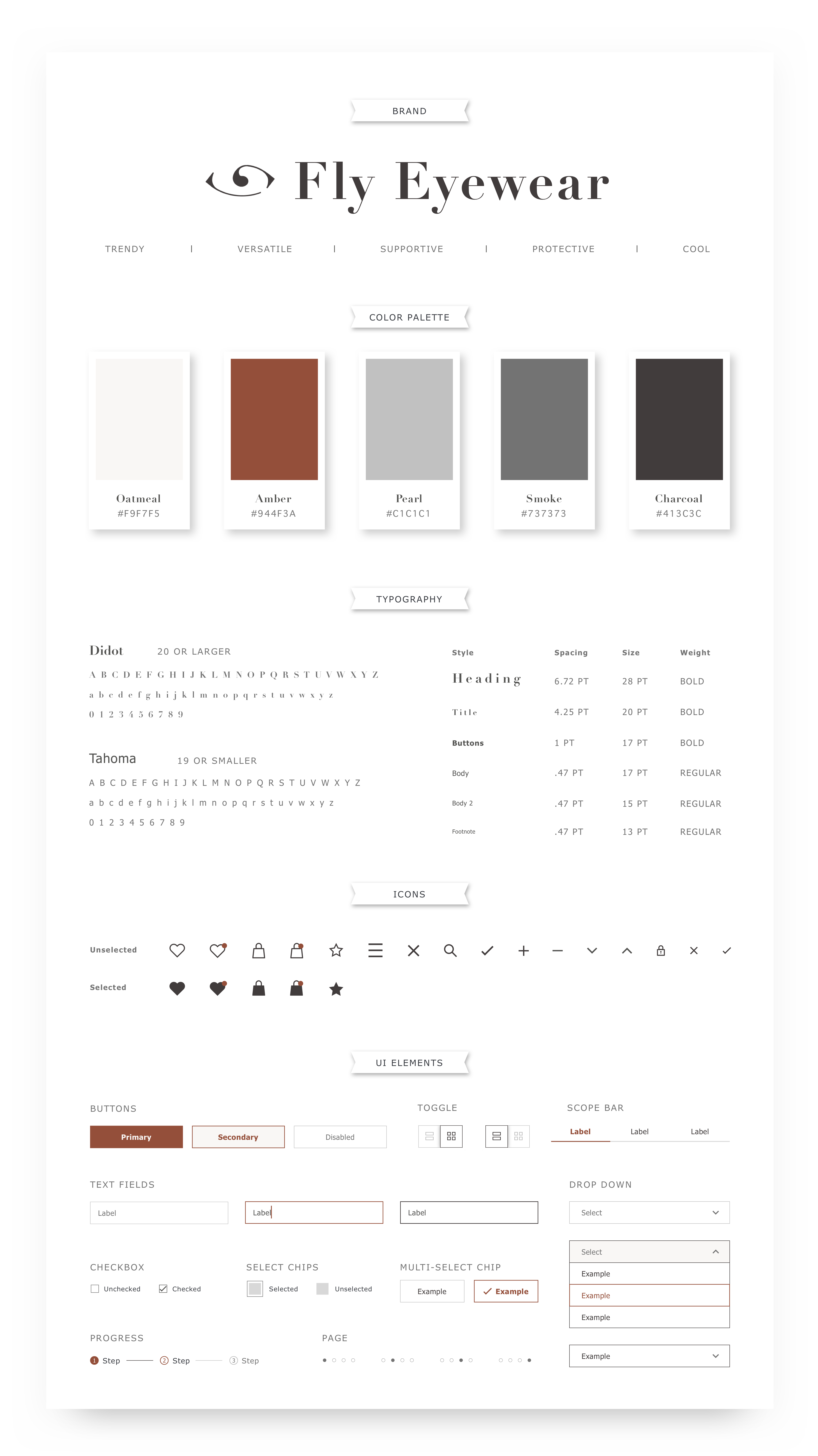 Before starting my high-fidelity wireframes, I put together a style guide to set a clear aesthetic direction for the site.