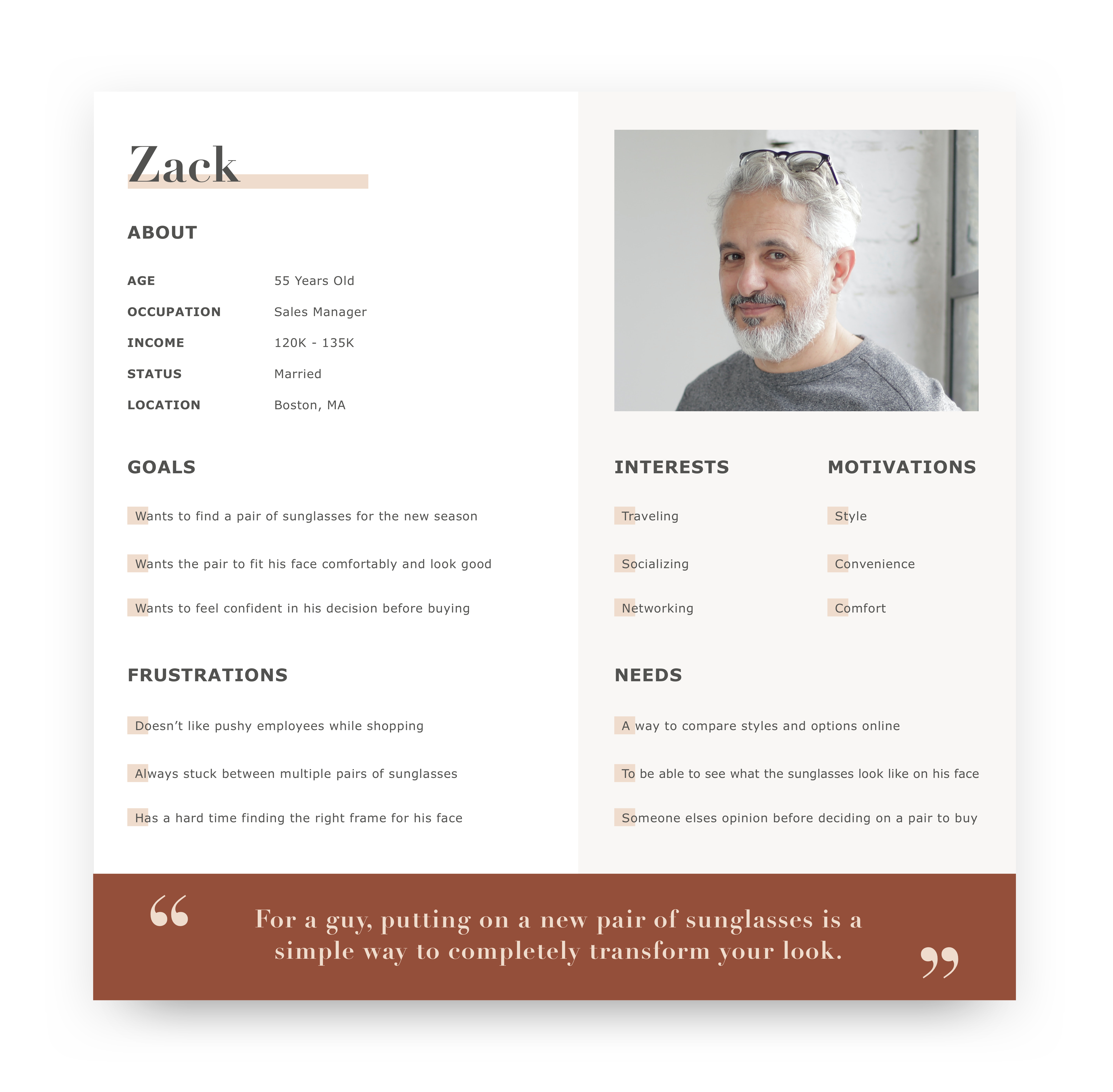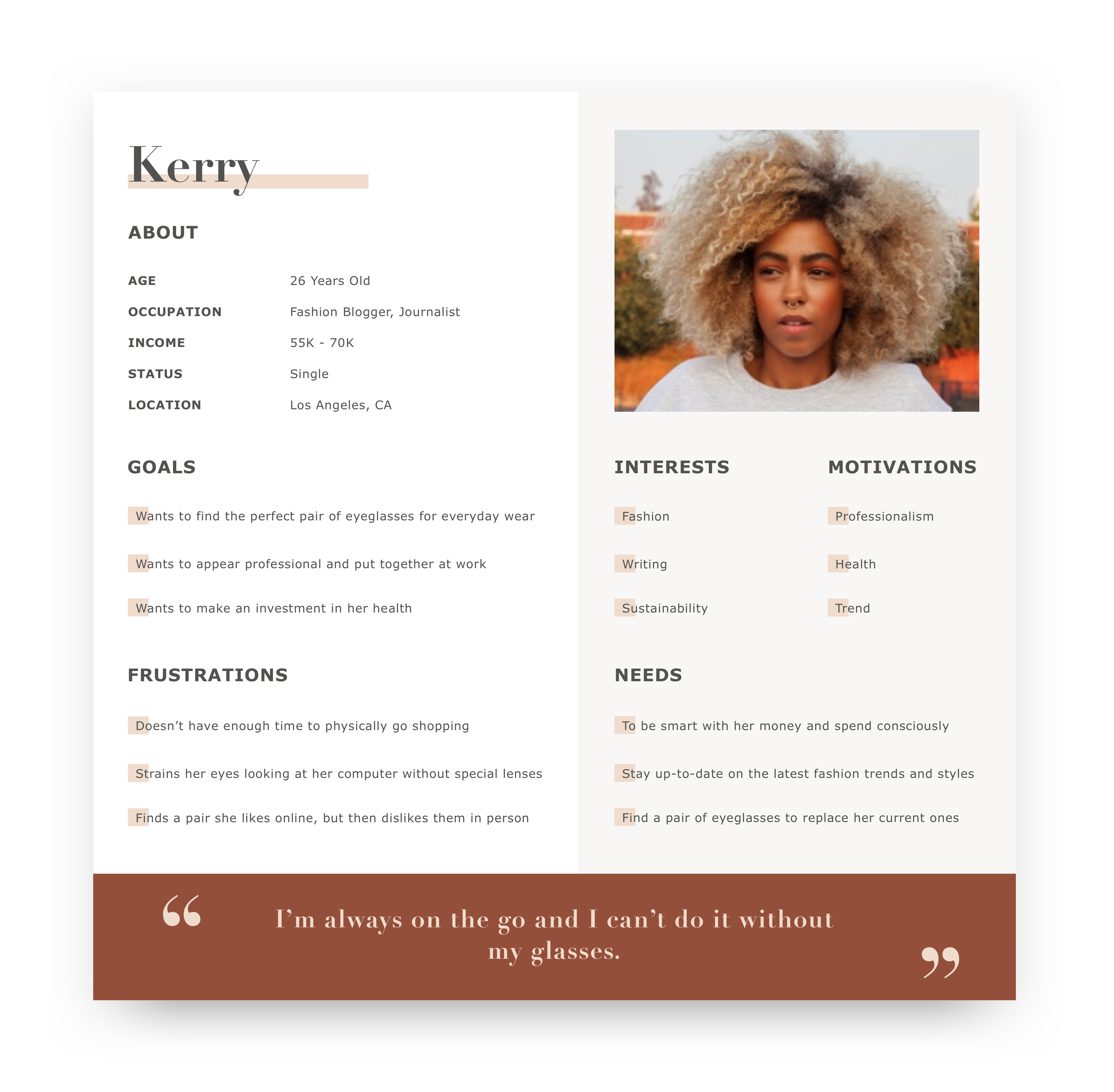 After reviewing my research, I created two personas to represent the different user types. I separated the users by their different shopping goals, frustrations, motivations, interests, and needs.