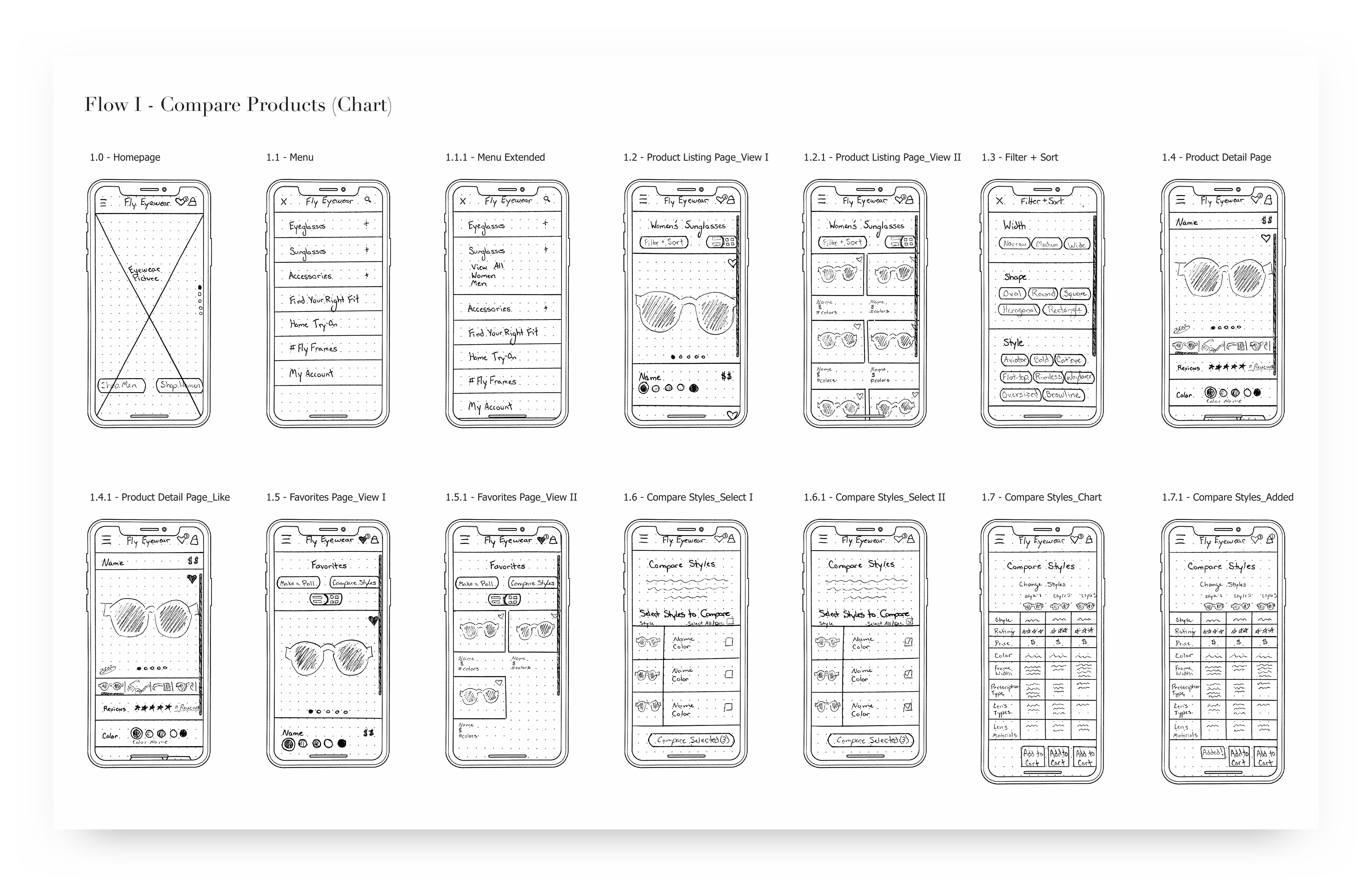 –> Sketch and create screens for the other features mentioned on the mobile-site – Home Try-On, Style Quiz, and #FlyFrames.