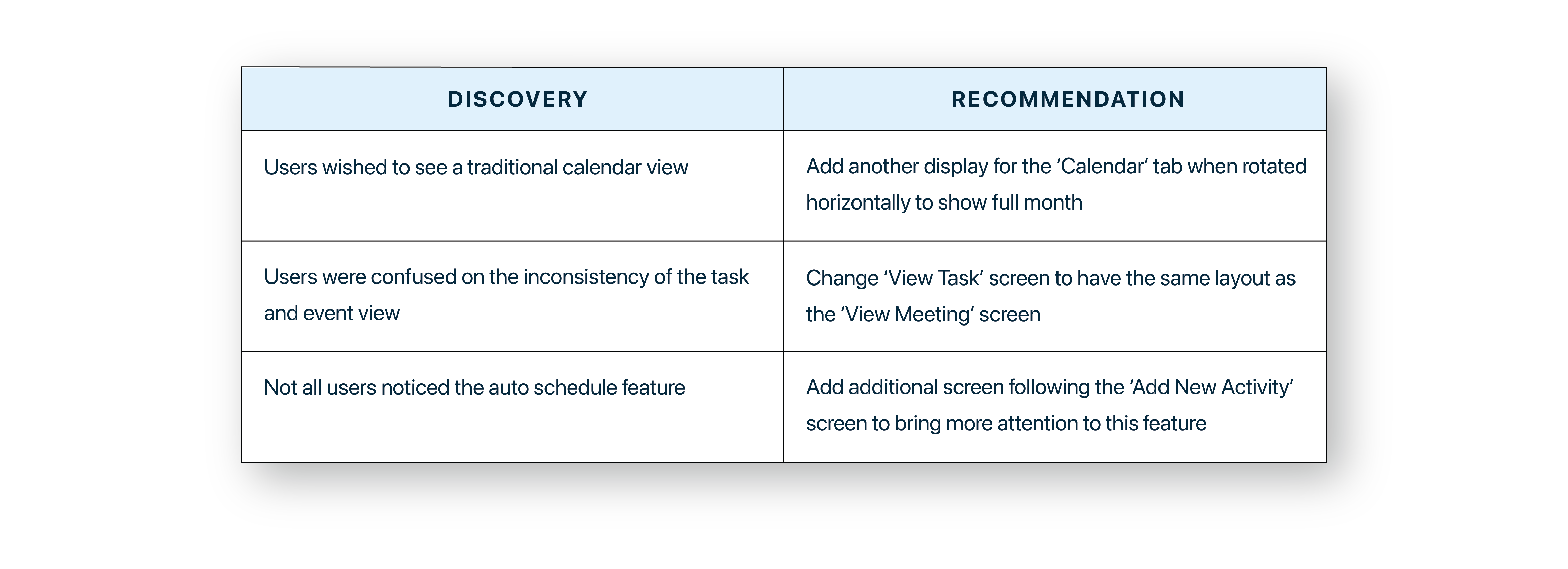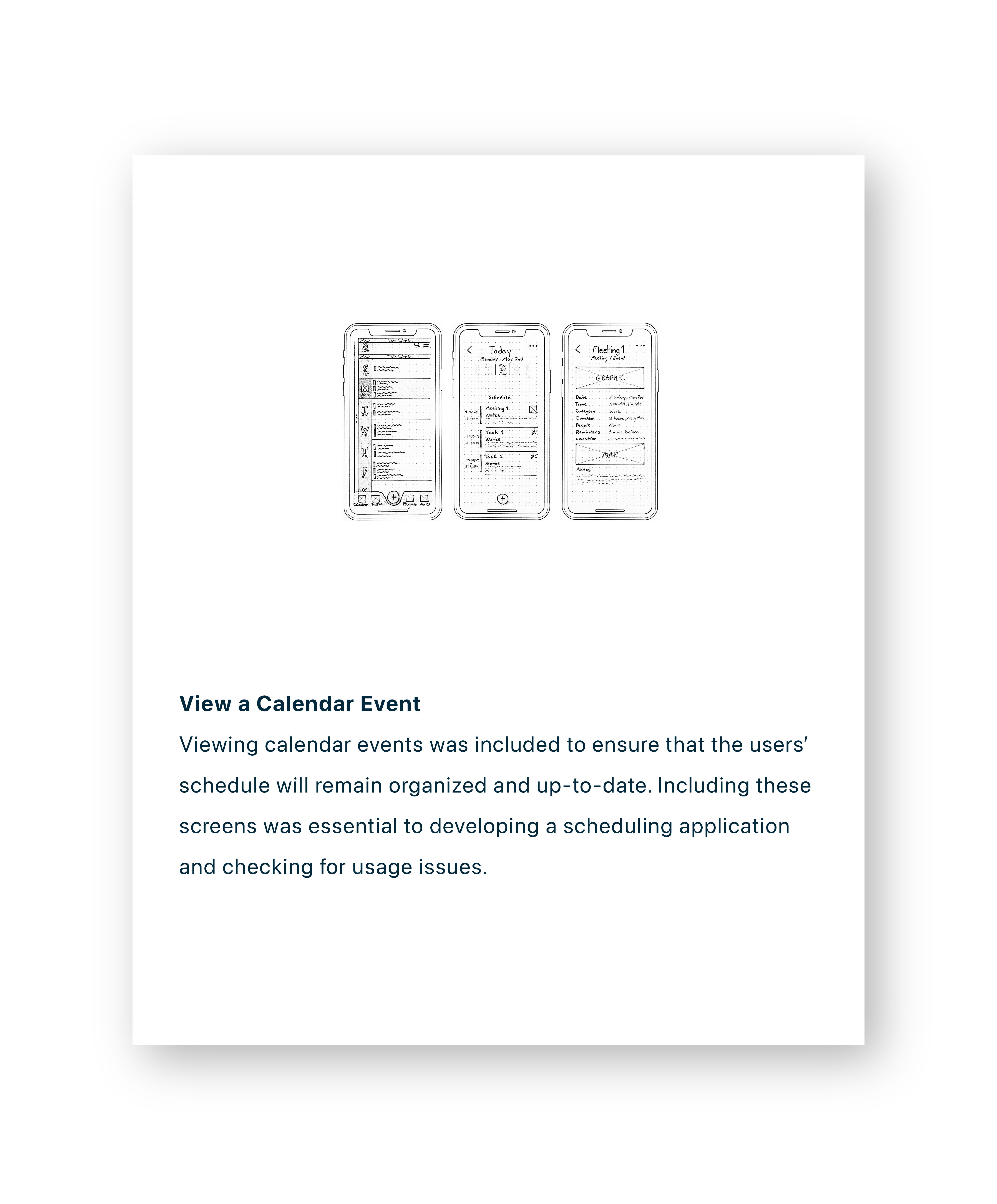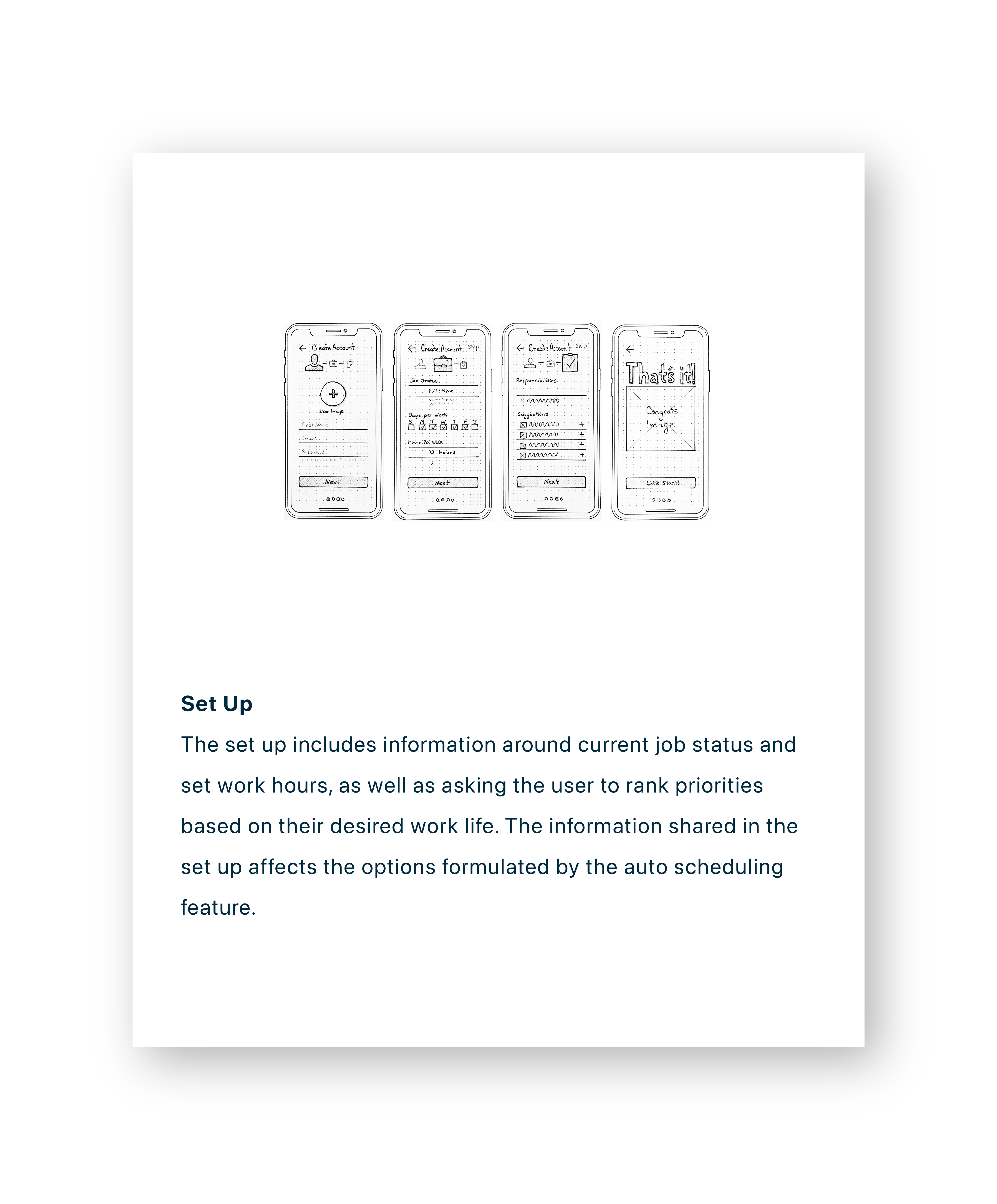 By following the human-centered design approach, I designed an auto scheduling application that organizes calendar events based on work and personal priorities. This information is gathered and sorted from personalized profiles, activity logs, and progress trackers.