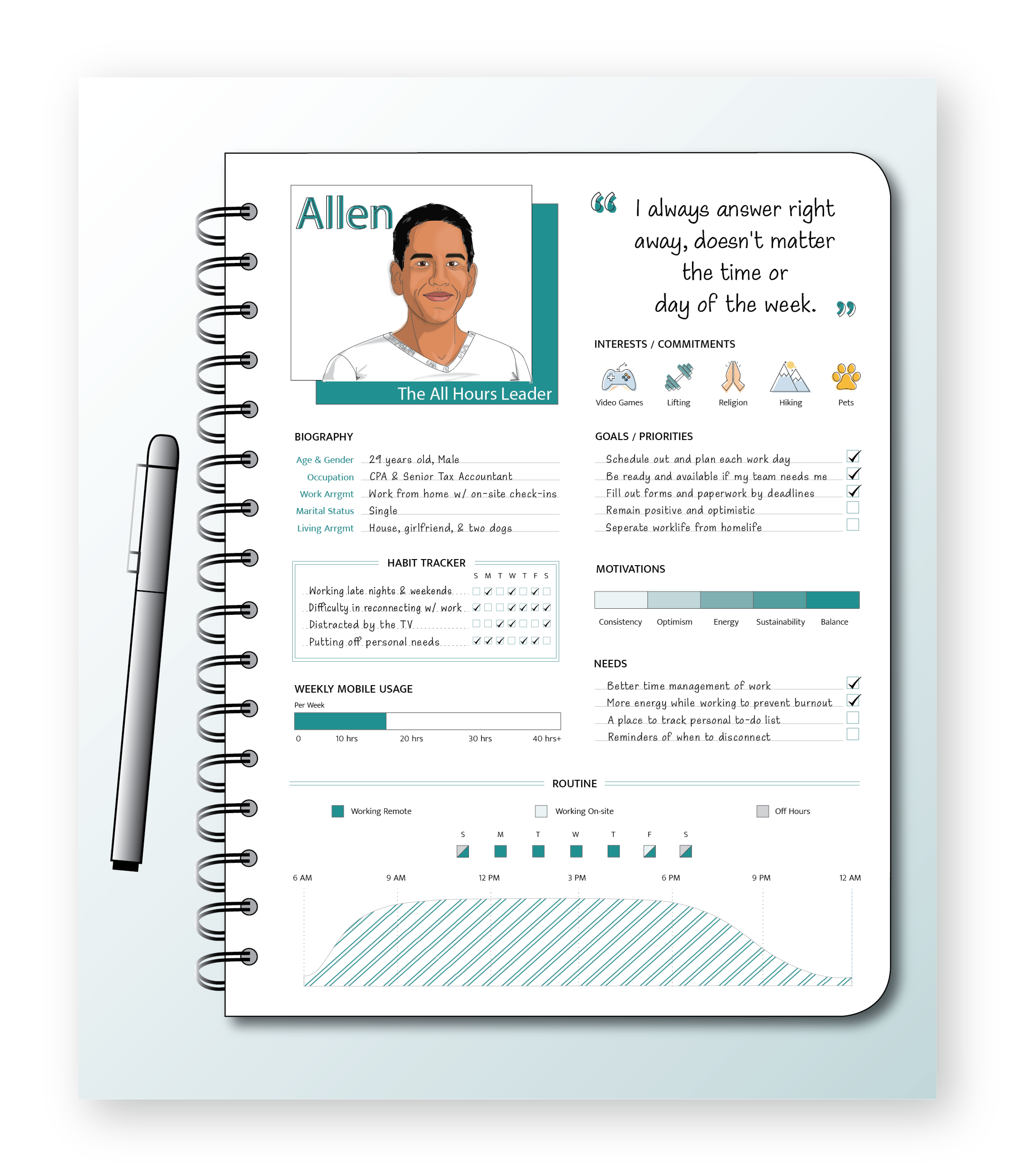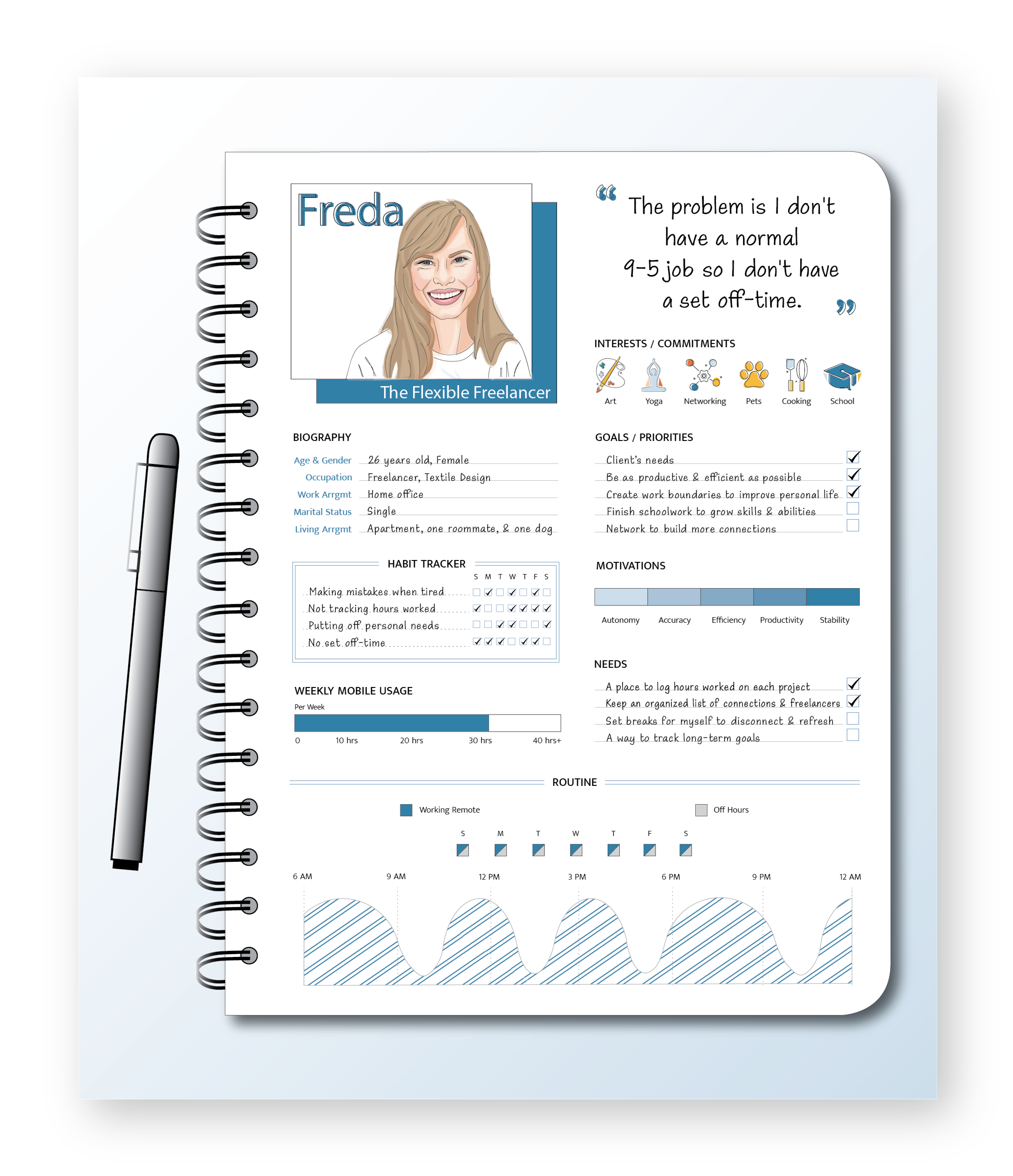All these users have different occupations and flexibility with working from home. Although their reasons may vary, they all desire the same end goal which is work/life balance.