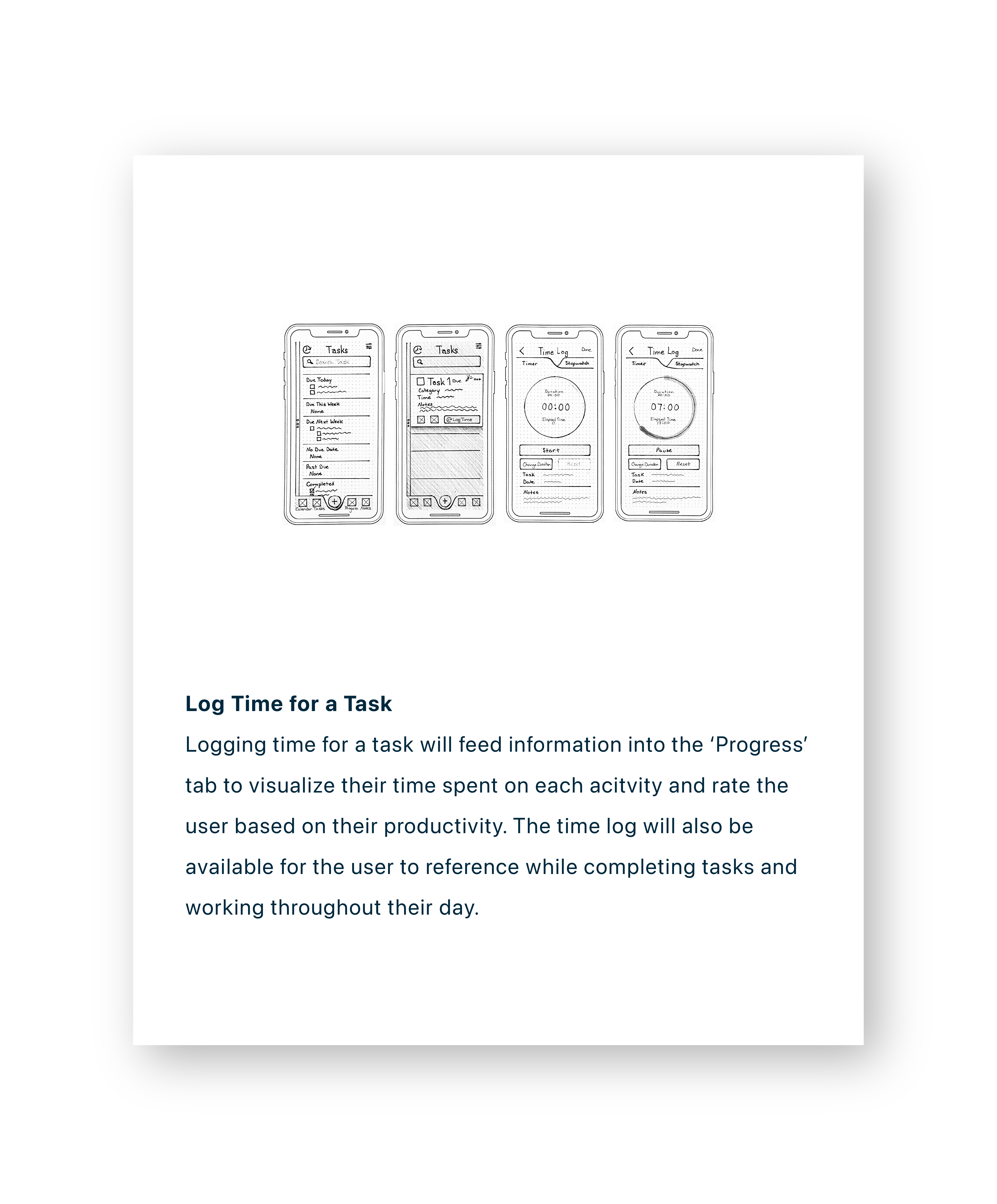 At this time, I considered including a ‘Goals’ tab because it felt relative to the task feature. Ultimately, I decided to hold off on this feature so I could focus on the scheduling part of the application and not complicate the interface.