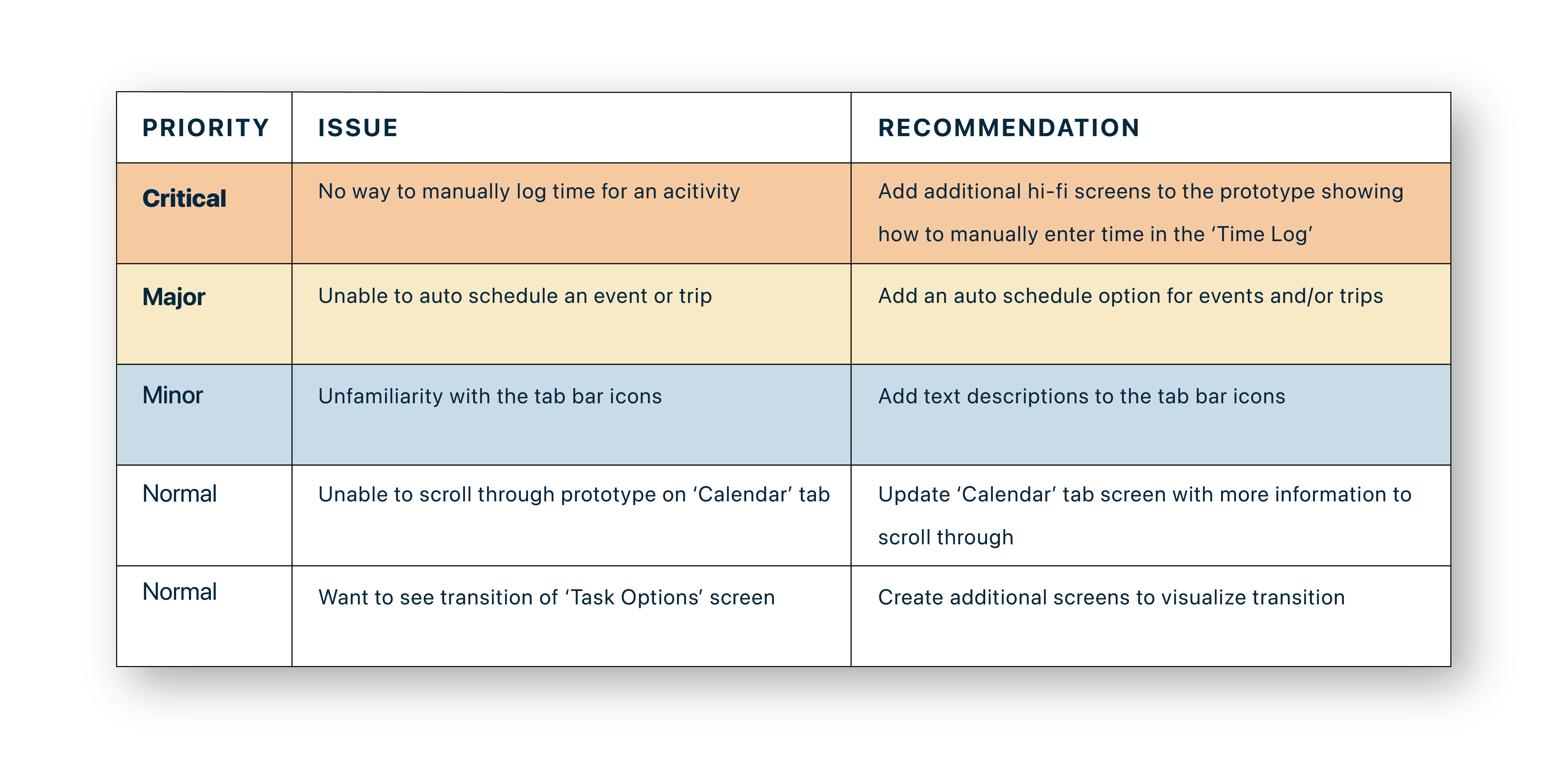 Once testing was complete, I ranked every issue by priority and provided solutions.